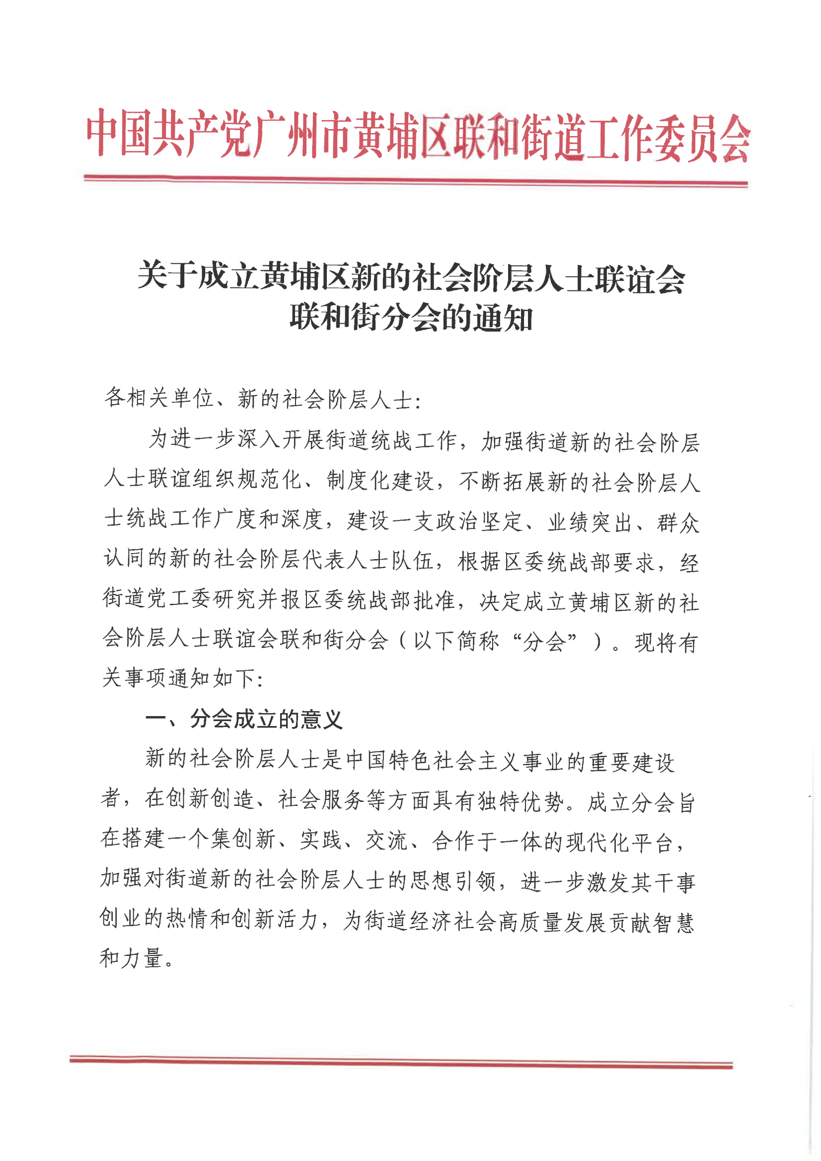 近日,黃埔區聯和街道正式成立黃埔區新的社會階層人士聯誼會聯和街分會,九州能源董事長張傳名擔任首任會長。